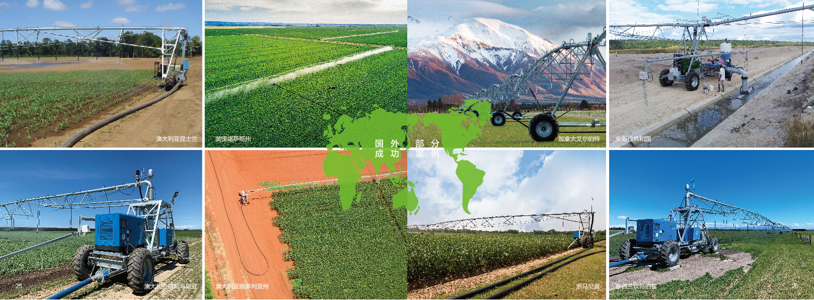 The span structure is similar to that of a center pivot system, with a maximum machine length of up to 1,200 meters, depending on system type, water supply method, power supply, and guidance system.